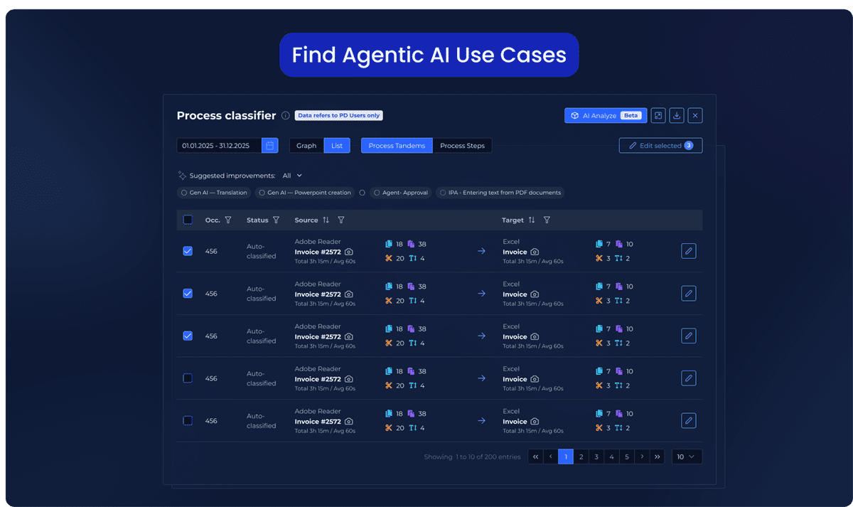 Every action it takes is recorded. You get full transparency through dashboards, alerts, and clear metrics like time saved and cost reduction. Granular data like screenshots and end to end process maps show you exactly how agentic AI completed a task(s).