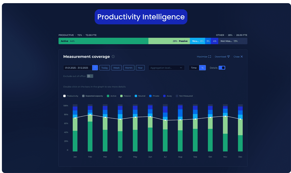 Use fact-based productivity metrics that reveal how work happens and highlight areas where there is potential to improve.